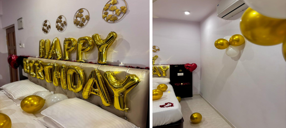 Make your celebrations unforgettable with our Special Room Décor service. We beautifully decorate your room for anniversaries, birthdays, proposals, honeymoons, or surprise moments for your loved ones. From romantic setups to birthday themes, we create a charming ambiance that adds a magical touch to your special day.